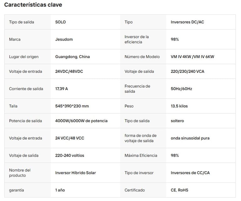 Optimiza tu sistema de energía solar con este potente inversor de 6KW y 48V, ideal para aplicaciones residenciales o comerciales. Soporta un voltaje de salida de 230VAC, corriente máxima de carga de 120A y rango MPPT de 60~450VDC, lo que garantiza una alta eficiencia y adaptabilidad. Su doble salida AC te permite alimentar varios circuitos, mientras el WiFi integrado facilita el monitoreo y control remoto desde cualquier lugar. Diseño moderno y seguro, perfecto para instalaciones solares avanzadas.